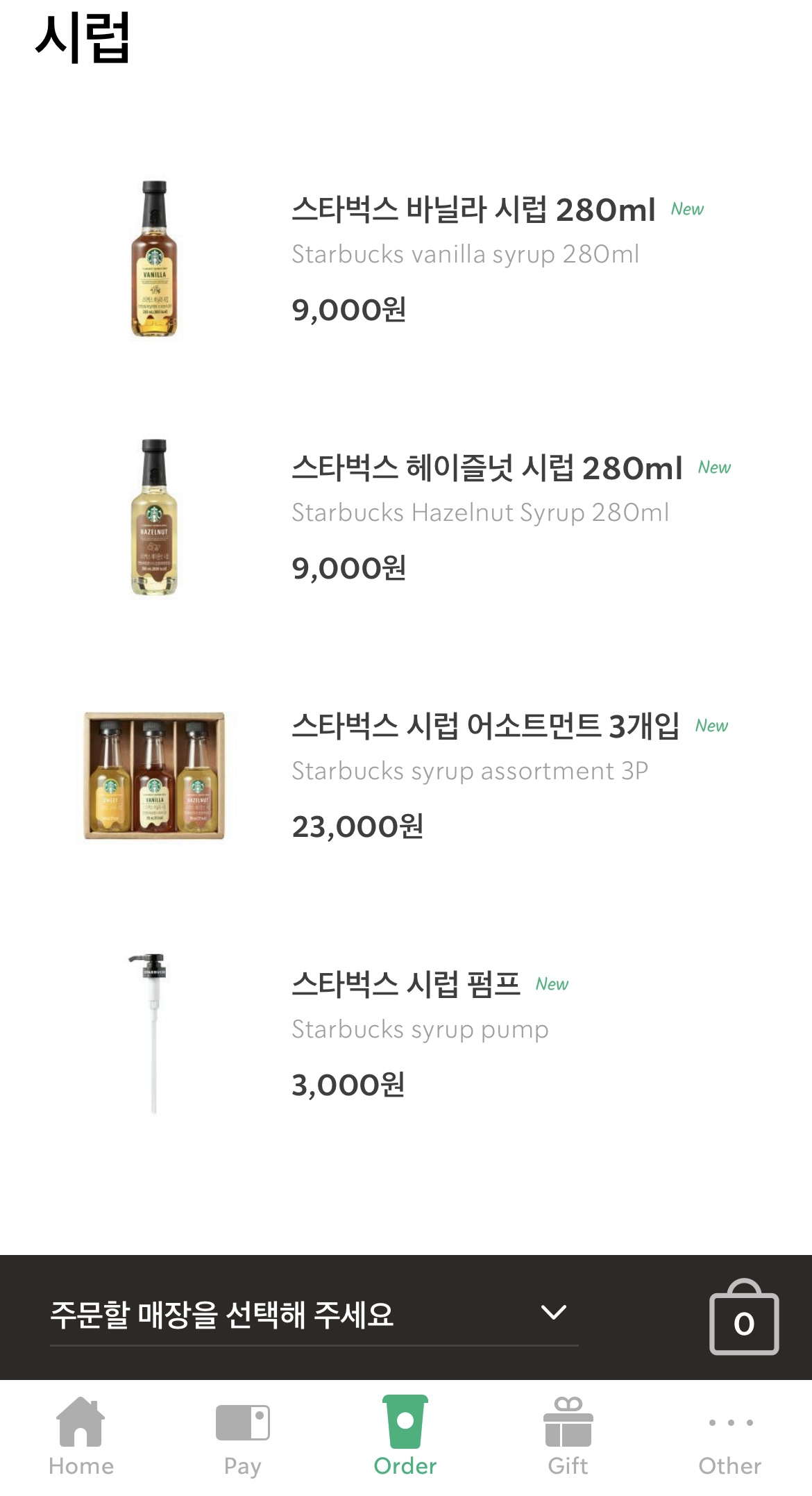 스타벅스 시럽 종류