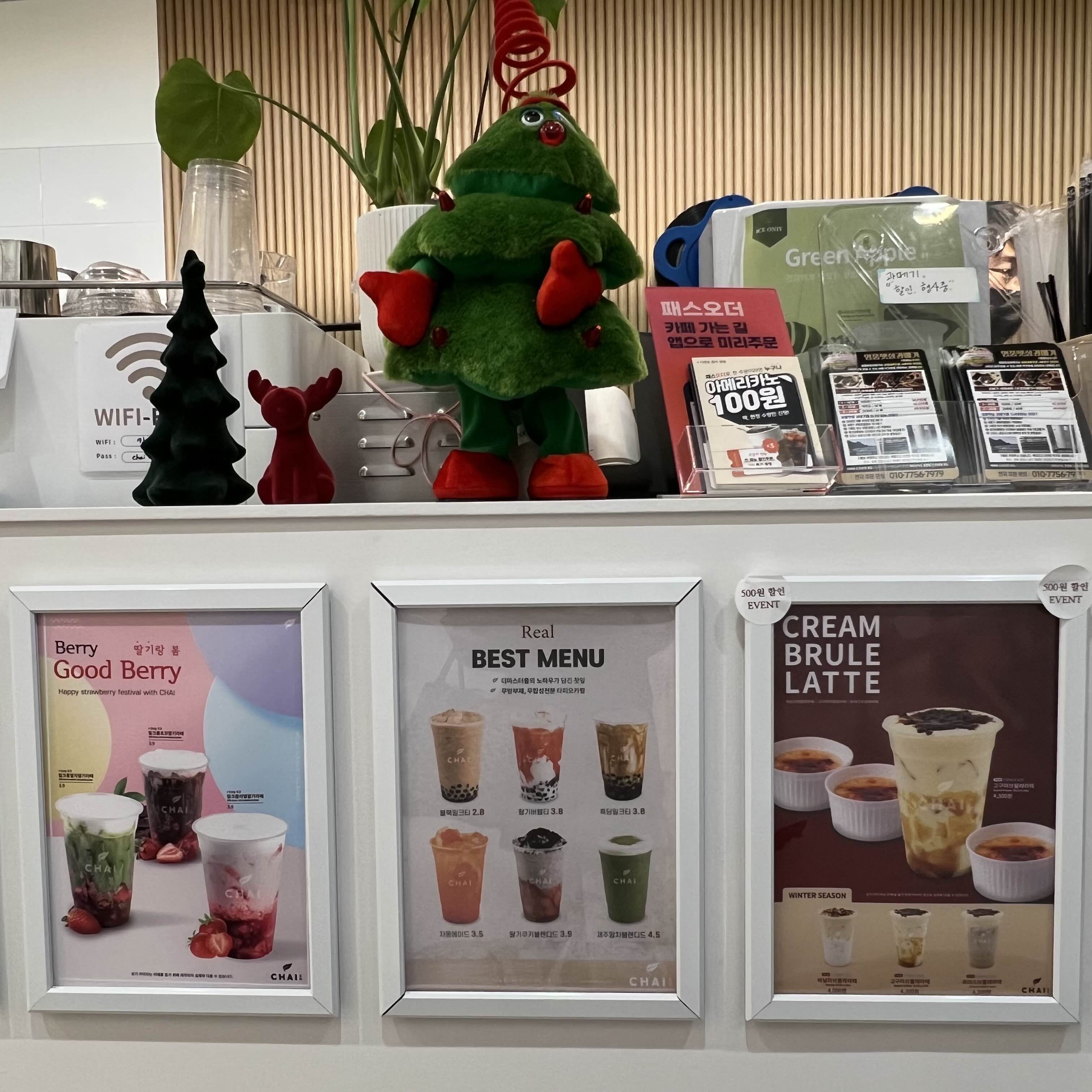 카페차이 내부 모습. 입식테이블 3자리 마련돼 있어요.