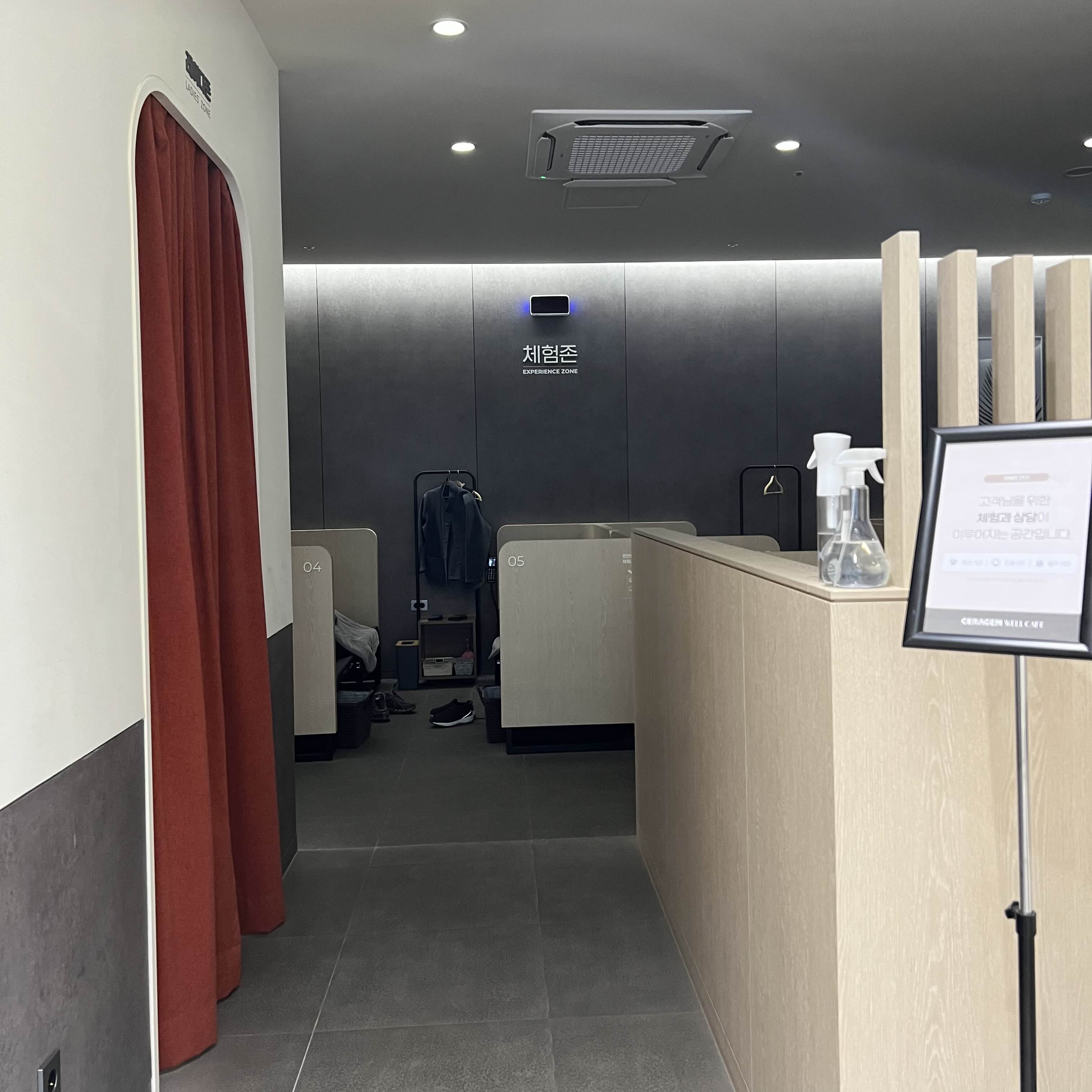 세라젬체험존은 이렇게 칸막이로 공간이 나눠져있어요.