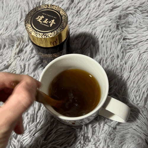 개인적으로는 그냥 숟가락으로 떠먹을 때보다 따뜻한 물에 타먹으니 단 맛이 덜하더라고요, 저는 그냥 나무숟가락으로 떠먹는 것 추천해요~