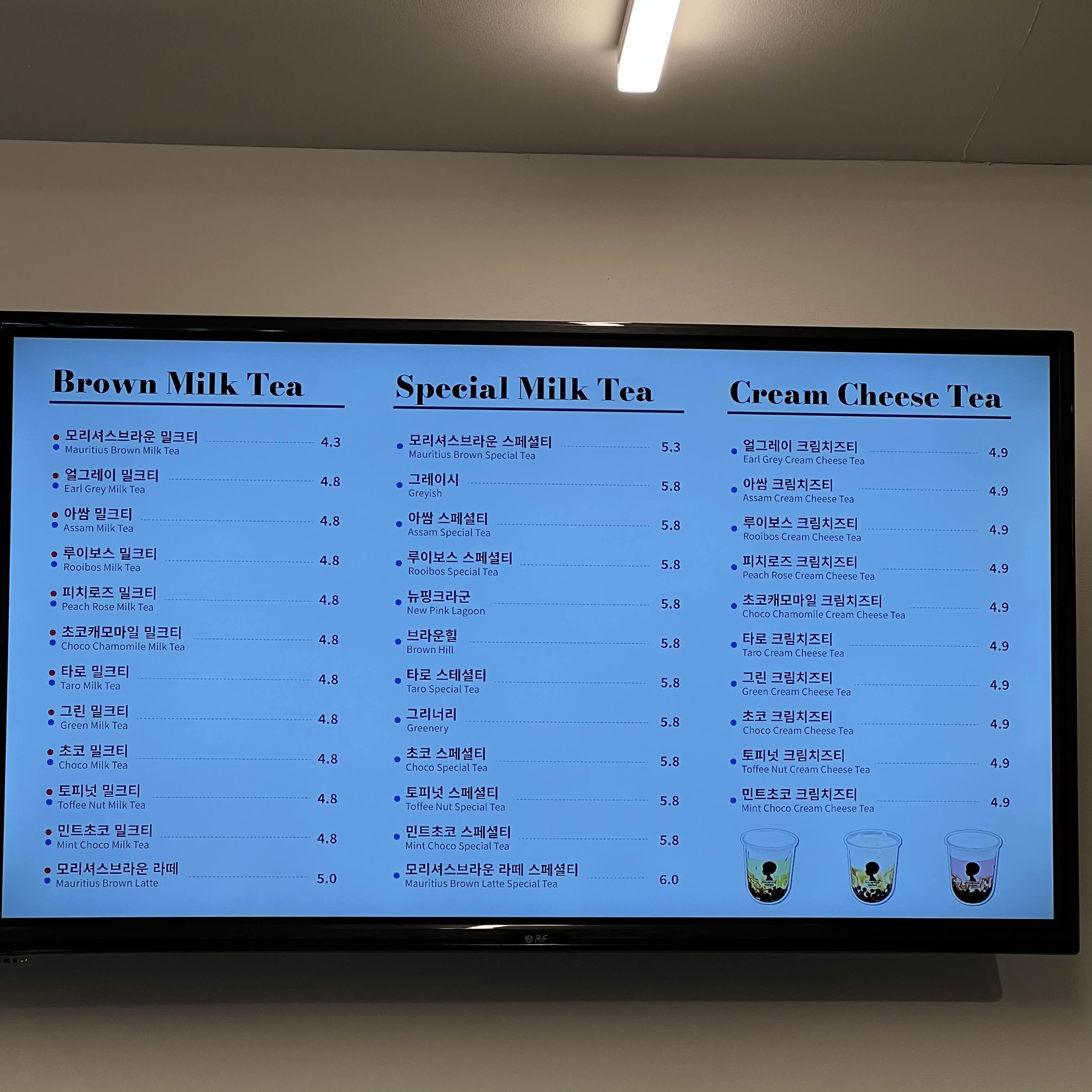 *메뉴(커피/논커피/티/에이드/밀크티/크림치즈티)