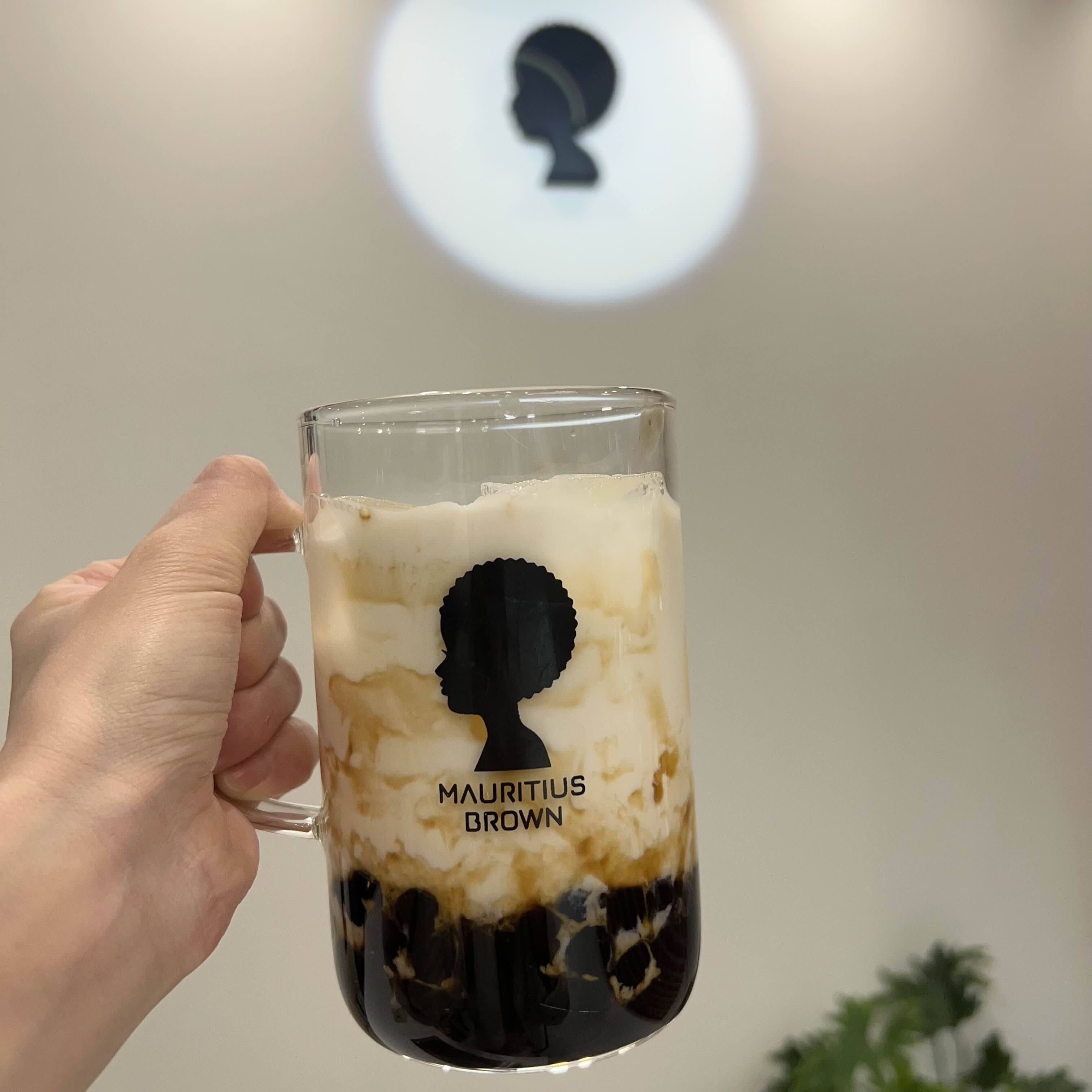 100% 생우유에 최고급 모리셔스산 비정제원당, 직접 제조한 브라운슈가펄이 들어간 모리셔스브라운의 시그니처 밀크티 모리셔스브라운 밀크티.