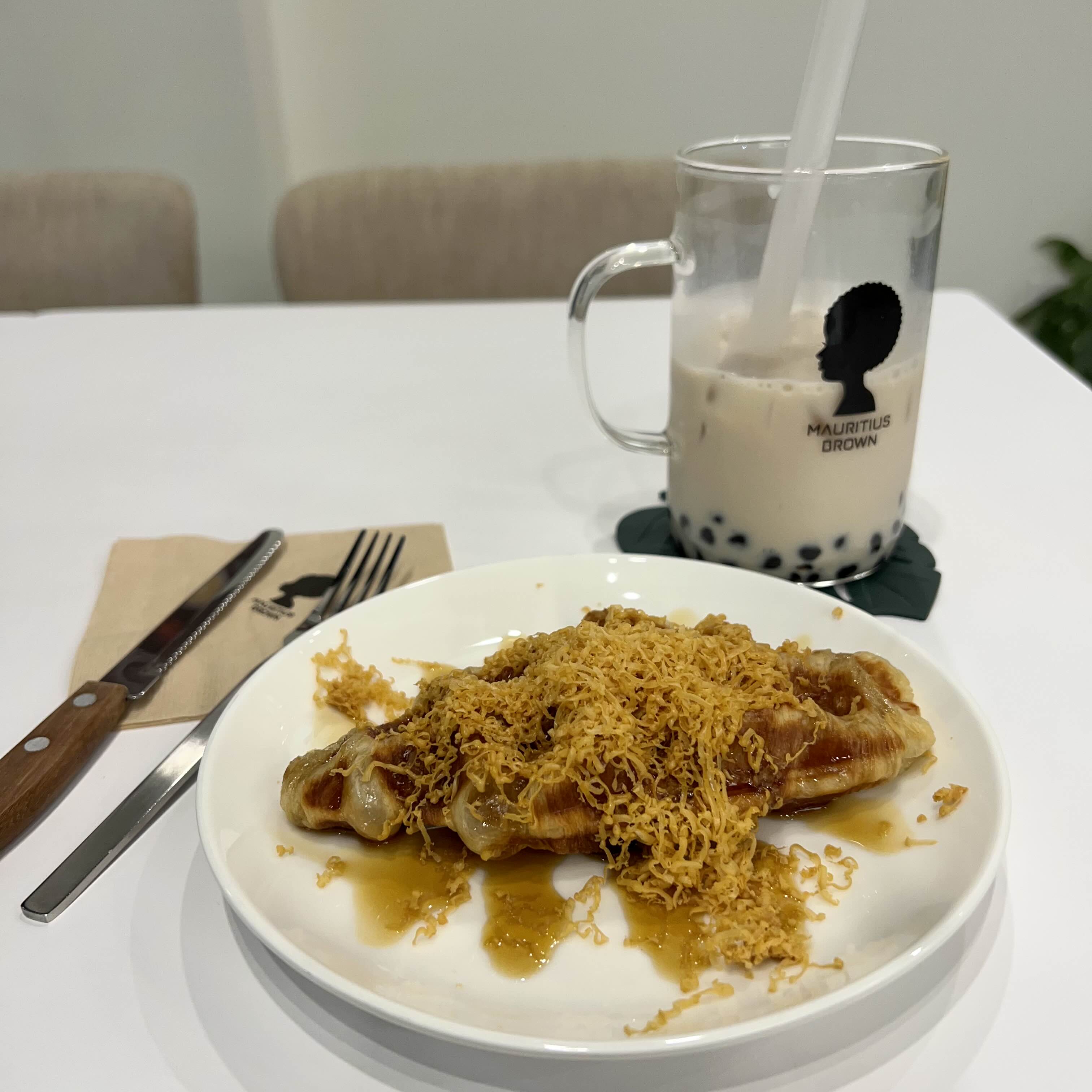 음료 모리셔스브라운 밀크티(가격 4,300원)와 디저트 브라운치즈크로플(가격 4,300원)을 주문했어요.