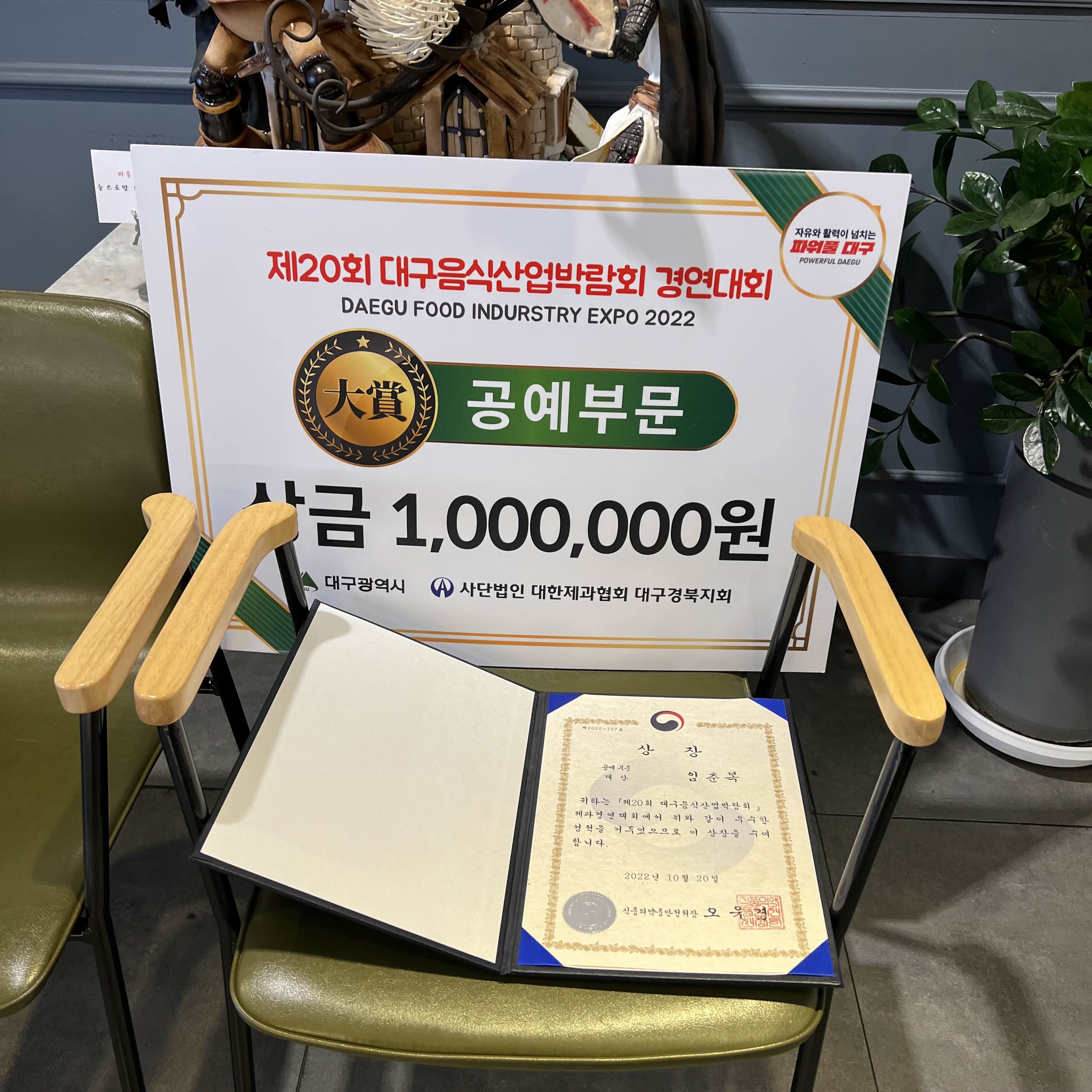 여러 음식경연대회 제빵부분에서 수상한 상장, 표창장들이 임춘복과자점의 맛을 증명합니다.🏅