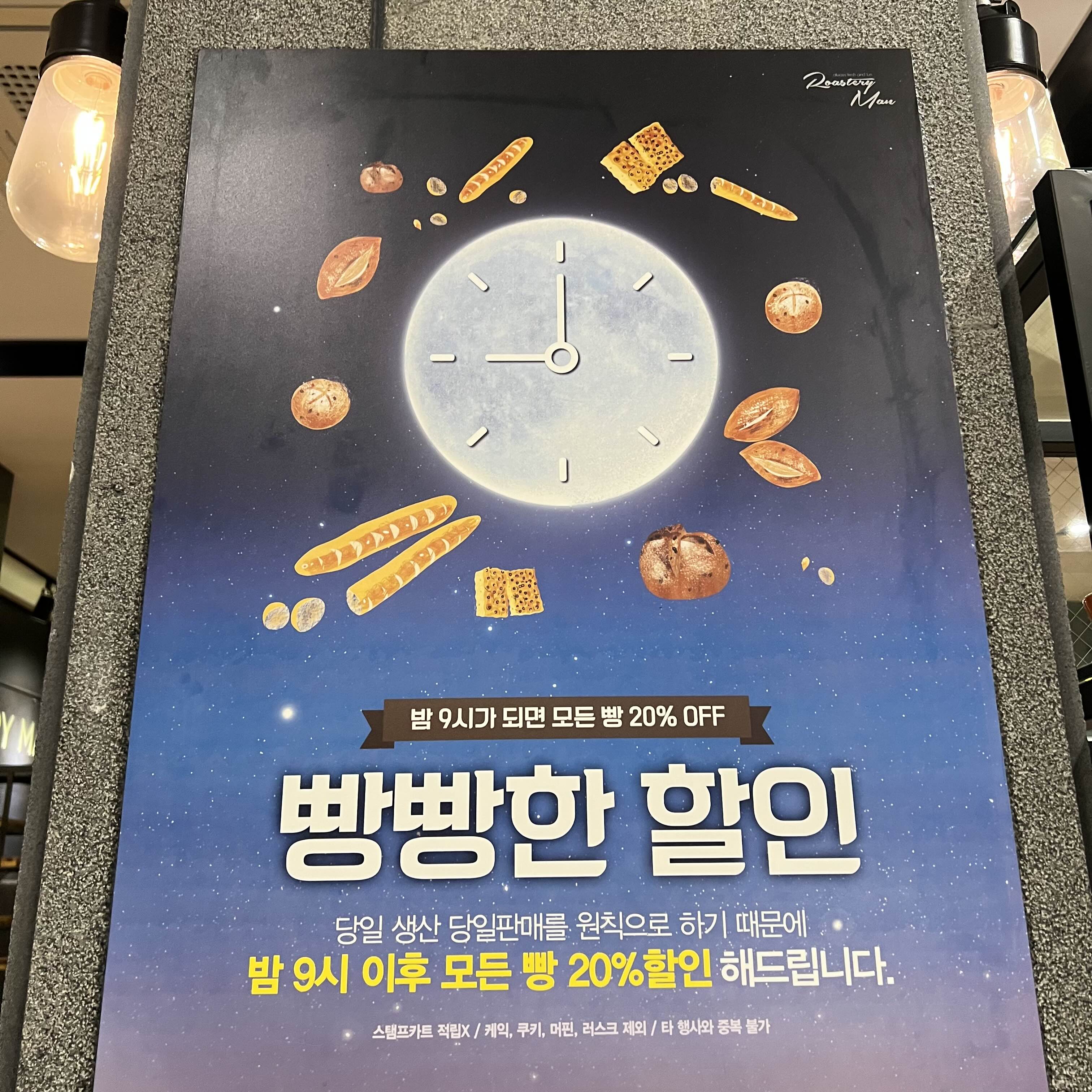 ⭐️저녁 9시 이후 빵 할인 20%(당일 생산 당일판매)