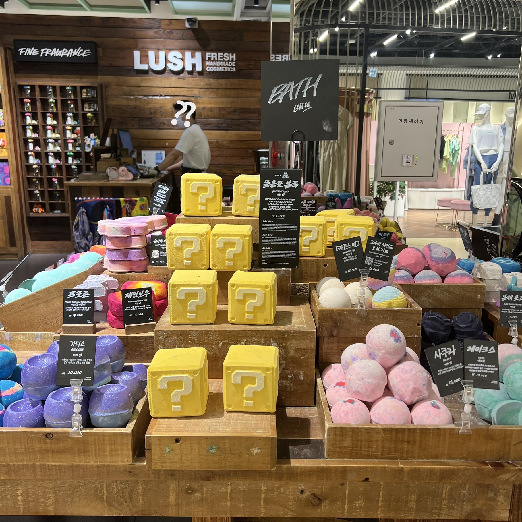 대구신세계백화점 러쉬 매장에 방문해서 러쉬 LUSH X슈퍼마리오 브라더스 콜라보 배쓰밤 물음표블록을 구매했어요.