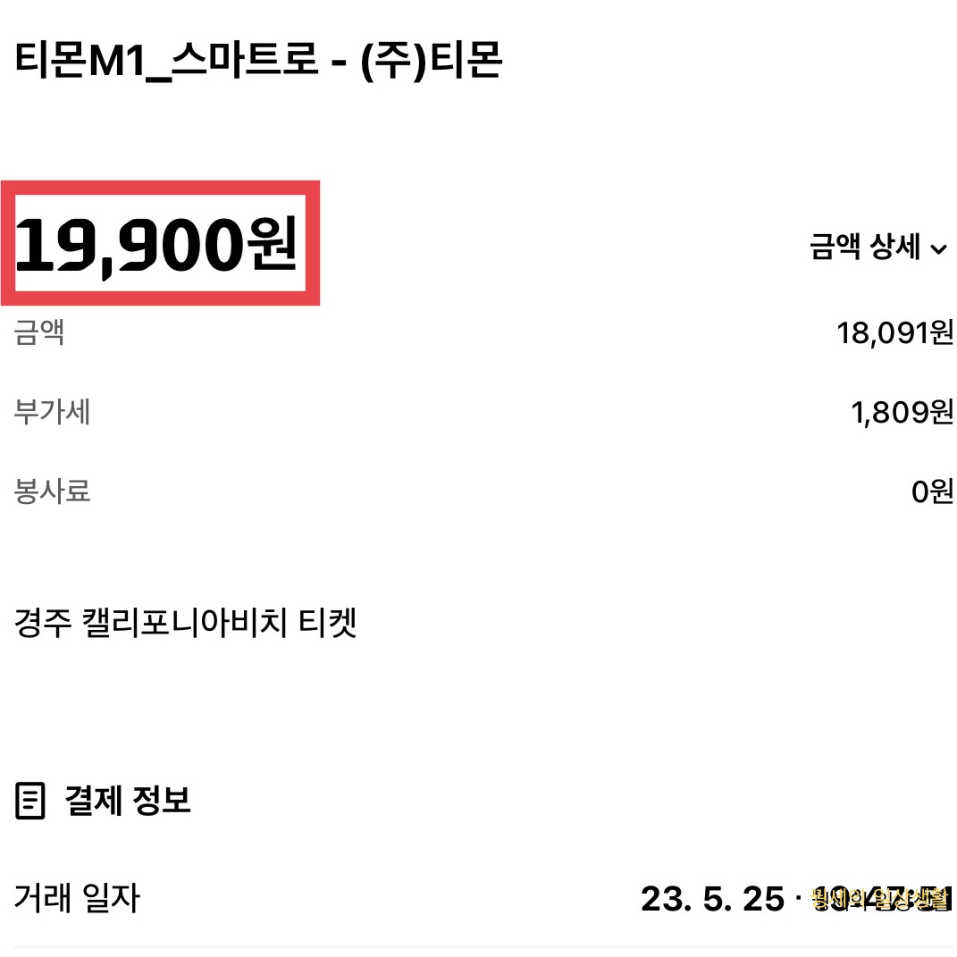 저는 5월 25일 티몬에 뜬 경주 캘리포니아비치 얼리버드 단독 특가 19,900원으로 할인 구매했답니다.