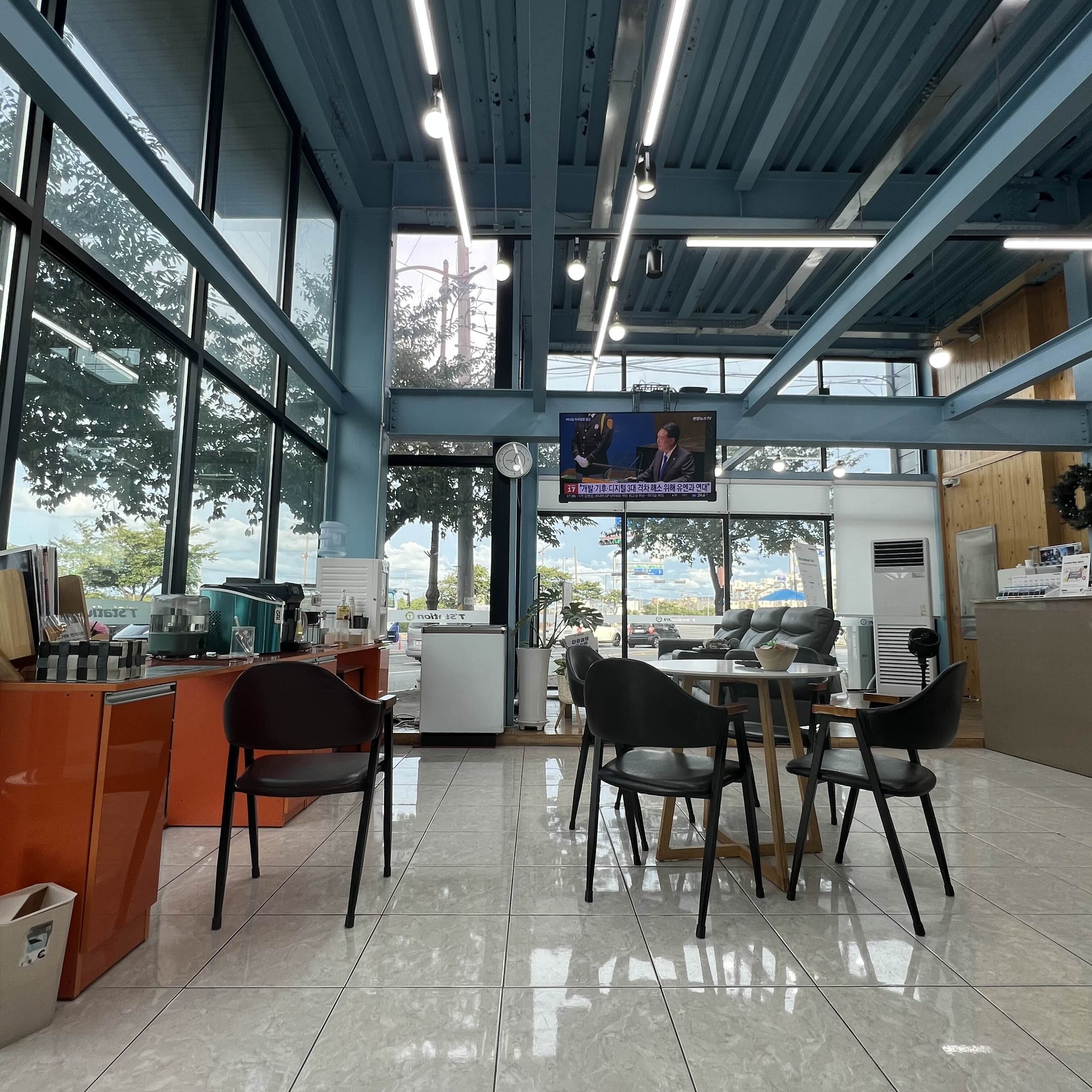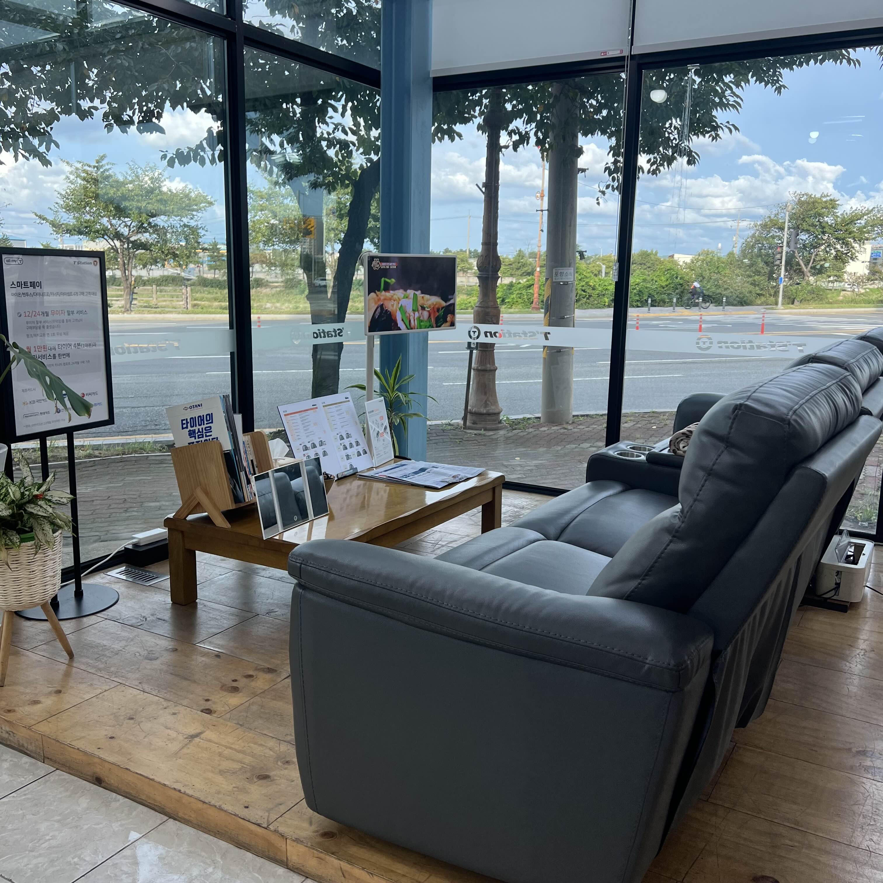 벽이 큰 유리창이라 답답함 없는 대기실 내부모습이에요.