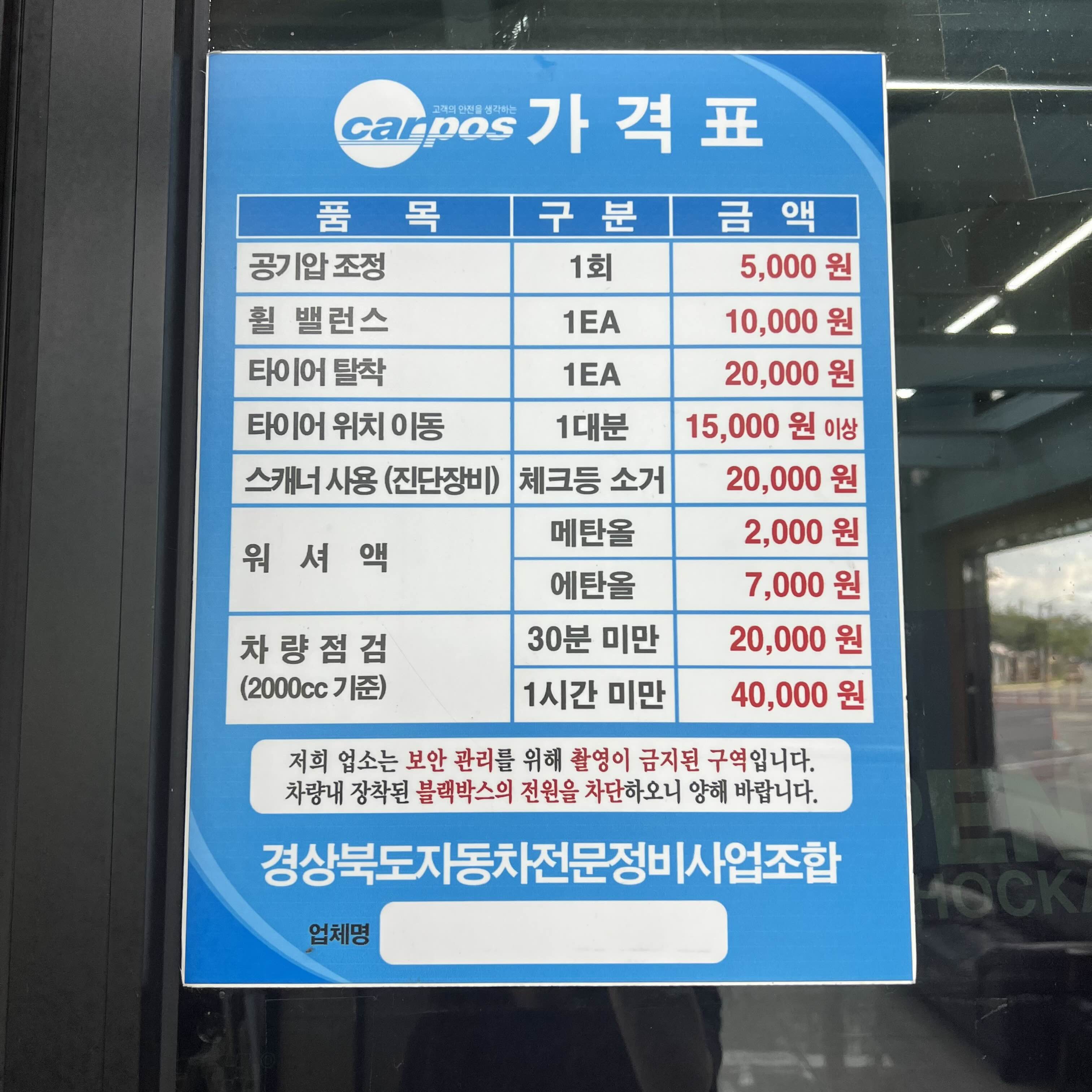 - 공기압 조정(1회) 가격 5,000원