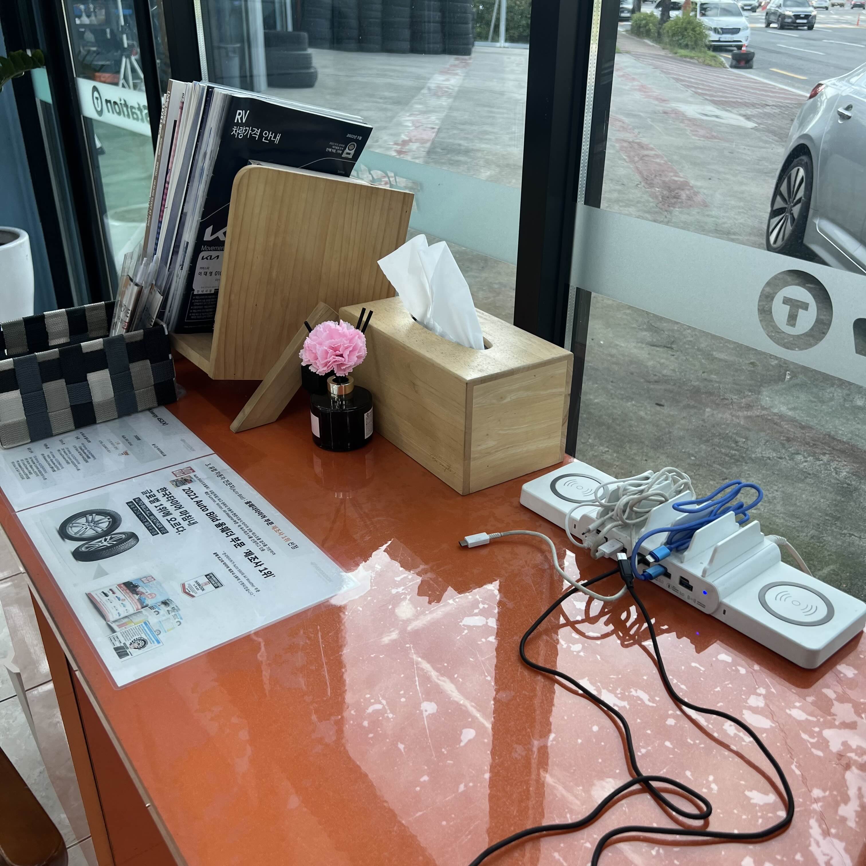 휴대폰 충전기도 있으니 대기시간에 휴대폰 충전도 가능.