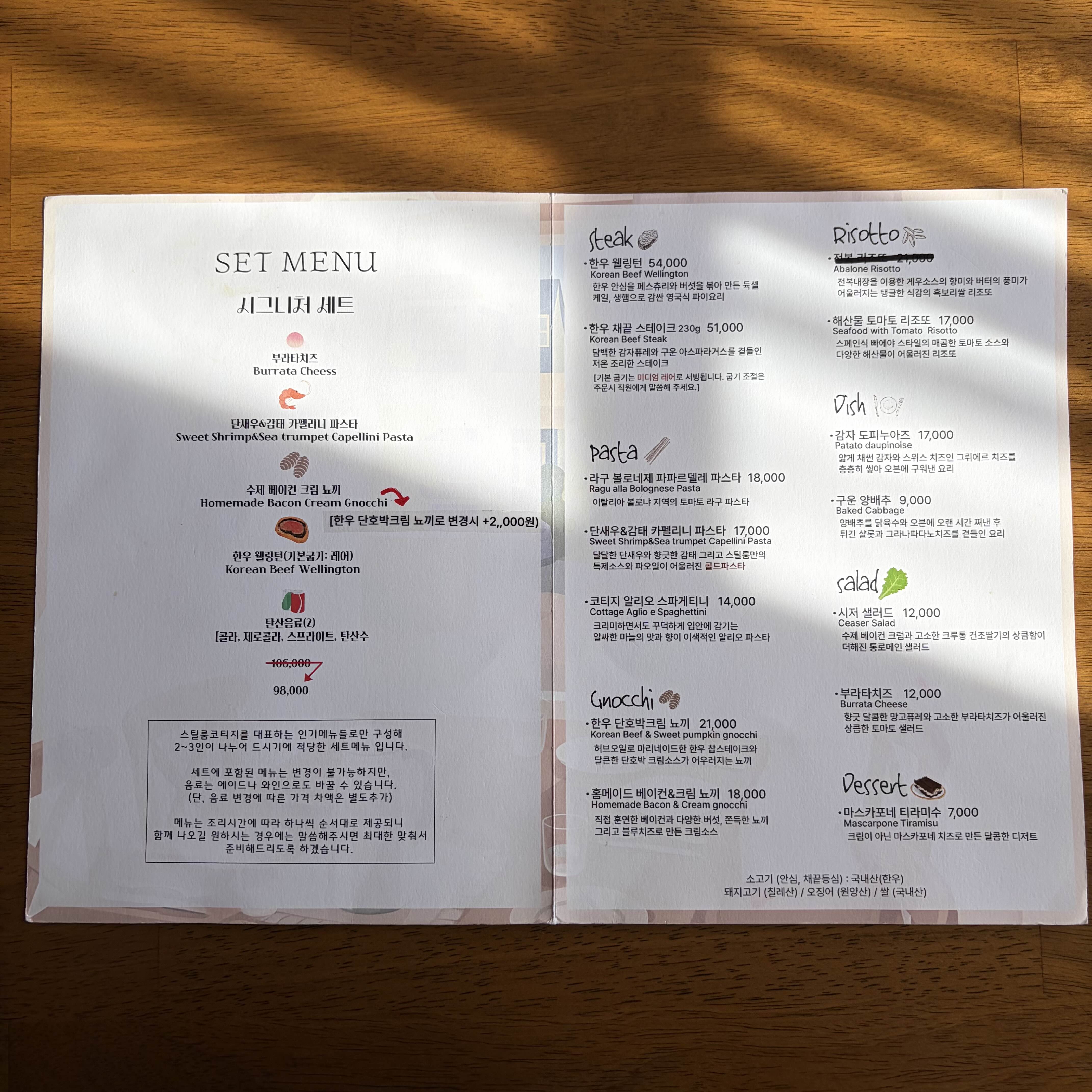 가정집을 개조해서 만든 식당이라 그런지 내부는 아늑한 느낌이 들었어요. 브라운톤에 따뜻한 인테리어와 적당한 테이블 세팅으로 조용하고 분위기있게 데이트하기 좋아요.
